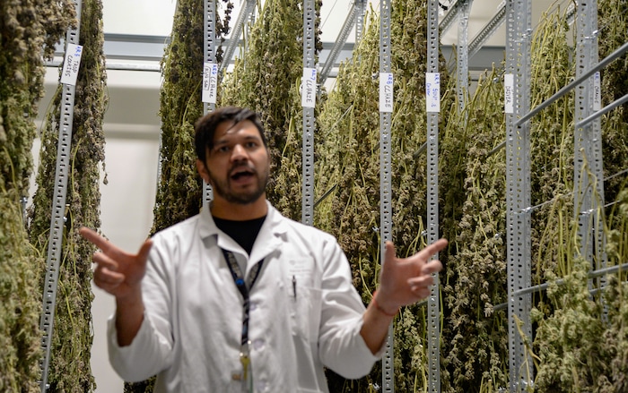 (Francisco Kjolseth | The Salt Lake Tribune) Assistant General Manager Patrick Quino, gives a tour of the drying room at Tryke, a new cannabis farm in Tooele, on Thursday, Jan. 30, 2020. The company, one of eight cultivators approved by the state, is expected to have product available for patients by March as part of Utah's medical cannabis program.