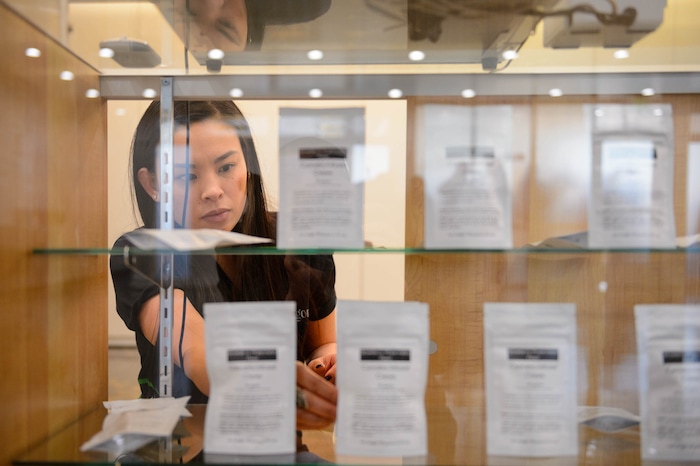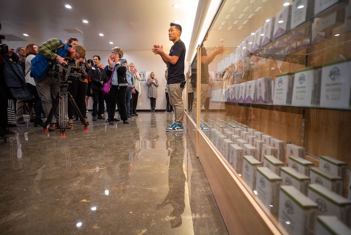 Just hours before the pharmacy opened for business, Panh gave reporters a tour of the business — a former Bank of Utah building still equipped with a working vault. Neatly boxed tinctures, vape cartridges, salves and chews lined spotless glass shelves beneath the service counter at the back of the spacious room.