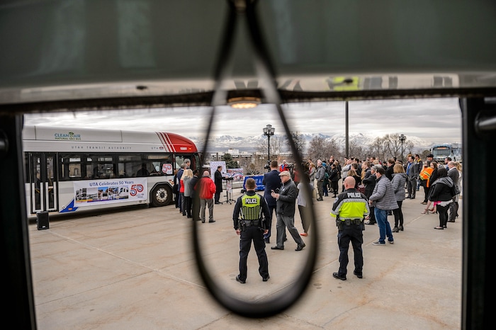 The Utah Transit Authority celebrated its 50th birthday with speeches by officials at “Transit Day” at the Utah Legislature on Tuesday.