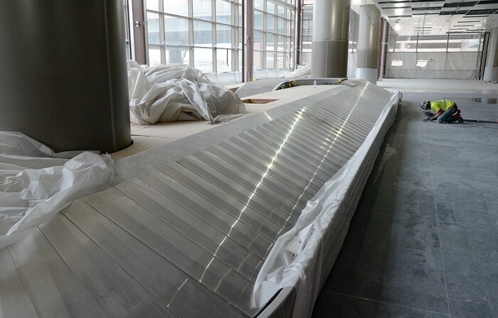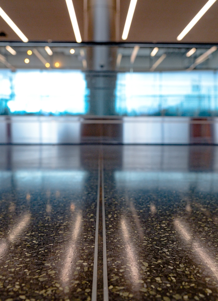 (Francisco Kjolseth | The Salt Lake Tribune) Polished terrazzo floors made up chips of marble and other stone products with cement or epoxy, forms a strong, durable flooring surface as crews continue their work in the first phase of construction of the Salt Lake City International Airport on Wednesday, May 20, 2020.