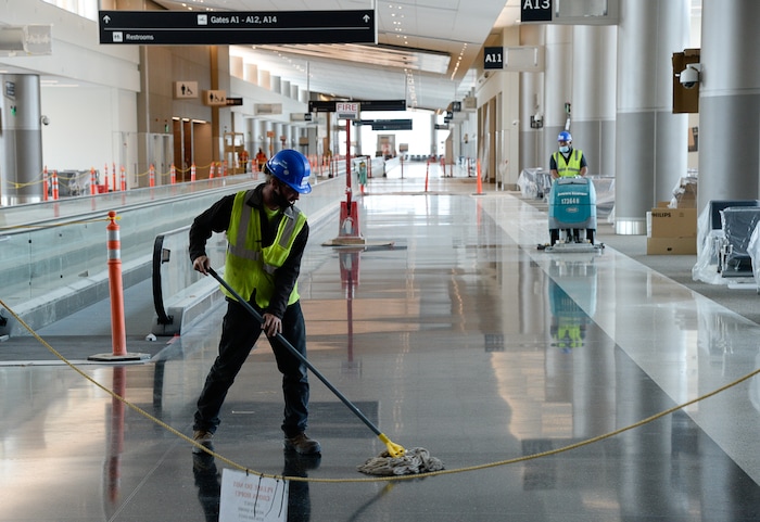 “You’re going to see mechanical devices that are attached to the handrails on the moving walks that clean them all the time,” he said. “All of the restrooms will have essentially nontouch apparatus.” Also, the airport will have fogging devices to help sanitize areas.