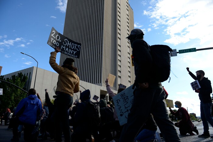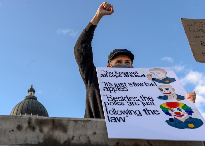 Protests decrying police violence in the wake of that incident continued in Salt Lake City on Monday, as around 200 people braved the rain with signs calling for change.