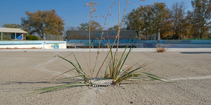 (Leah Hogsten | The Salt Lake Tribune) Oct. 29, 2020. In the 1980's Raging Waters water park was home to the world's third wave pool. Today the property is in such disrepair that Salt Lake City needs to disassemble it and figure out some kind of new park to replace it. Closed since 2018,vandalism and operator abandonment has left the park a liability for the city.