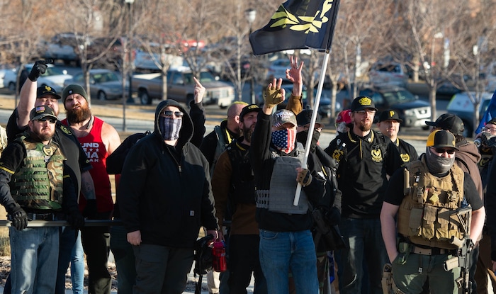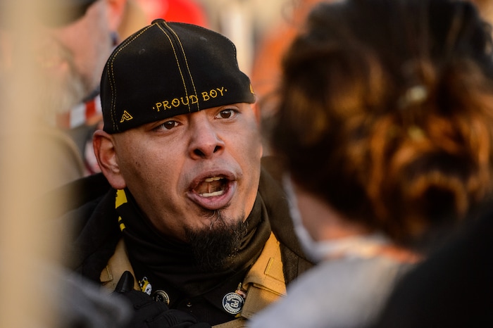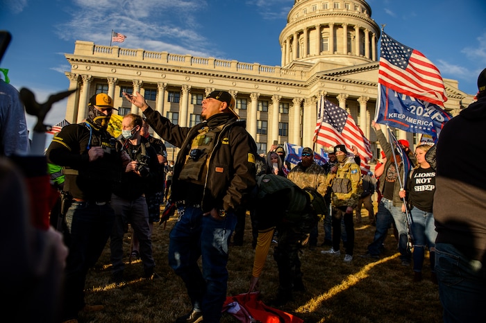 (Francisco Kjolseth | The Salt Lake Tribune) Members of the Proud Boys, a far-right, neo-fascist organization, join other Trump supporters listening to speeches at the State Capitol in Salt Lake City on Wednesday, Jan. 6, 2021.