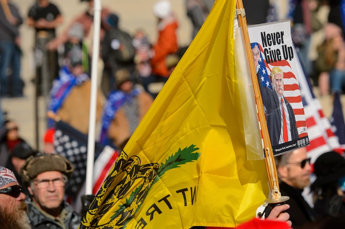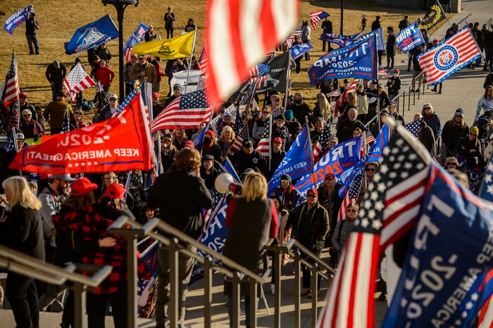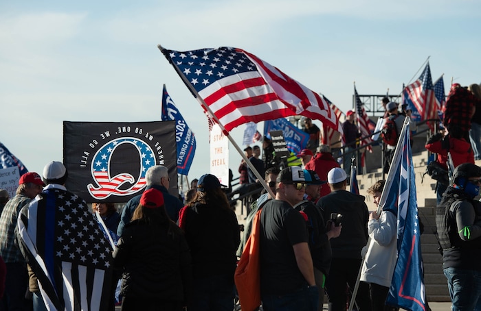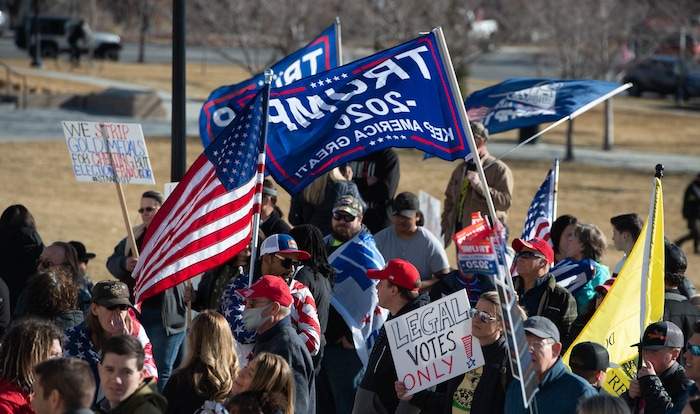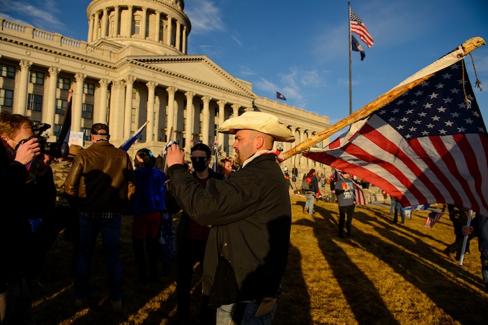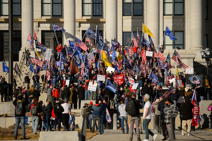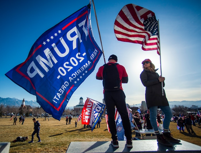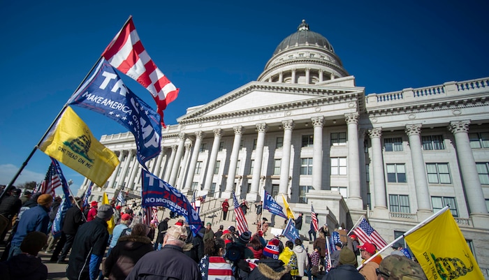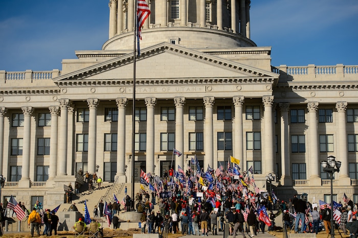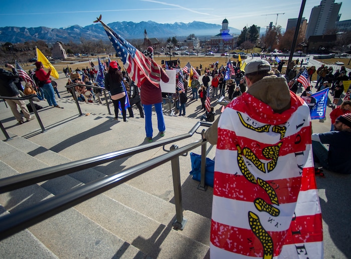 (Rick Egan | The Salt Lake Tribune) Trump protesters gather for a rally at the Utah State Capitol on Wednesday, Jan. 6, 2021.