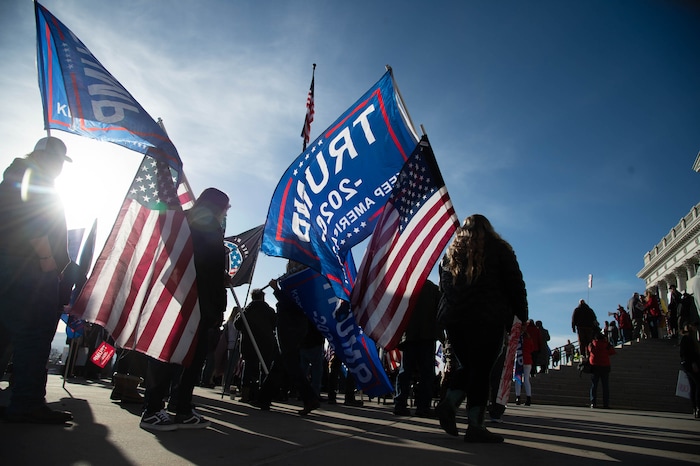 (Trent Nelson | The Salt Lake Tribune) Trump supporters at the State Capitol in Salt Lake City on Wednesday, Jan. 6, 2021.