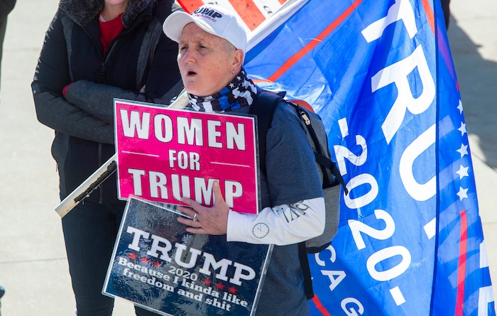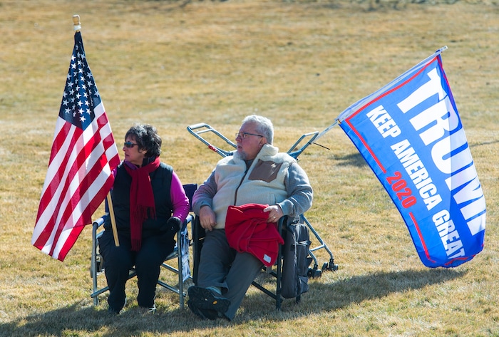 (Trent Nelson | The Salt Lake Tribune) A group of Trump supporters listens to speeches at the State Capitol in Salt Lake City on Wednesday, Jan. 6, 2021.