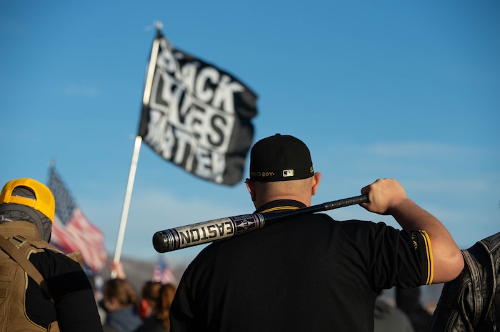 The Utah protest was mostly peaceful, although it was marred by several skirmishes or threatened confrontations with a small group of Black Lives Matter counterprotesters, the escort of one man off the premises by members of the Proud Boys and Utah Citizens Alarm (UCA) armed with bats and guns, and the unprovoked pepper-spraying of a Tribune photographer.