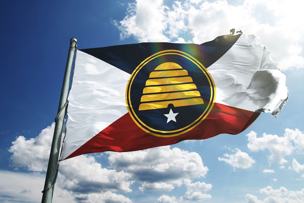 His proposed flag — a graphic design that features a golden beehive and the colors of the state’s redrock landscape and snowcapped mountains — makes him smile when he sees it floating on the breeze, he says. And he believes the design would have the same effect on other people.