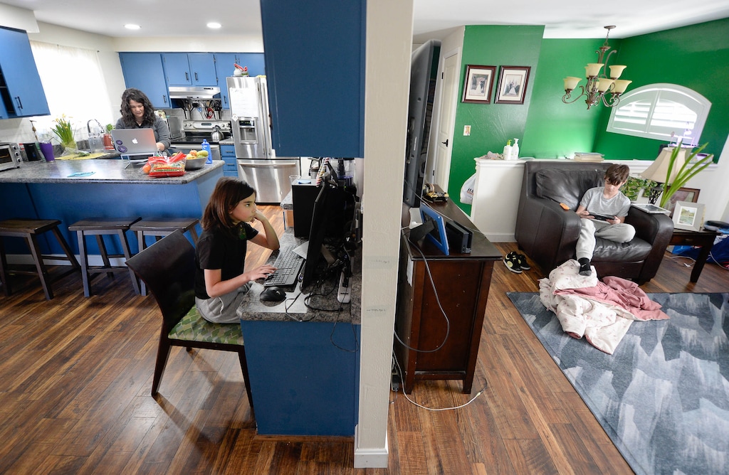 Pete Busche, a Sandy resident and manager with the Utah Higher Education Assistance Authority, said that once he enrolled his children in daycare and school, telework has become “much more manageable” and he largely enjoys working from home.