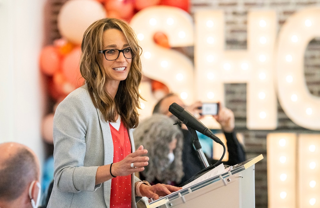 (Rick Egan | The Salt Lake Tribune) Utah first lady Abby Cox describes her new statewide service initiative during a news conference in Alpine on April 27, 2021.