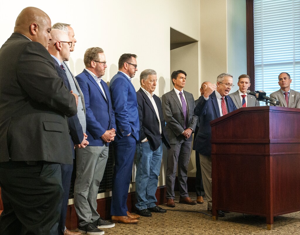 (Francisco Kjolseth | The Salt Lake Tribune) Utah County Attorney David Leavitt holds a press conference in Provo on Wednesday, June 1, 2022, where he called for Utah County Sheriff Mike Smith to resign, alleging his office is being used for “political purposes.”