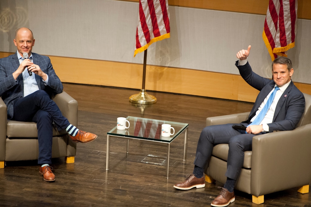 As McMullin’s communication director Kelsey Koenen Witt’s introduced Kinzinger, the audience interrupted her with roaring applause as she touted his role as one of two Republicans on the Jan. 6 Committee.