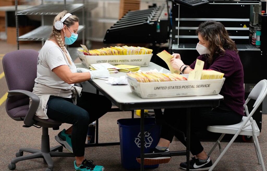 (Kim Raff | The New York Times) A voter drops off their ballot at a ballot drop box on Election Day outside the American Fork Library in American Fork, Nov. 8, 2022.