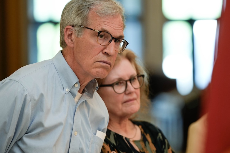 (Francisco Kjolseth | The Salt Lake Tribune) Malcolm and Victoria Reid, plaintiffs in the redistricting case, join a news conference at the Utah Capitol, following the Utah Supreme Court’s ruling that the Legislature overstepped its authority when it rewrote a 2018 voter-approved ballot initiative in drawing new congressional districts, Thursday, July 11, 2024.