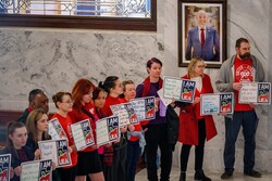 (Bethany Baker | The Salt Lake Tribune) The Utah Education Association holds a press conference after lawmakers postponed action on HB267 at the Capitol in Salt Lake City Friday, Jan. 31, 2025.