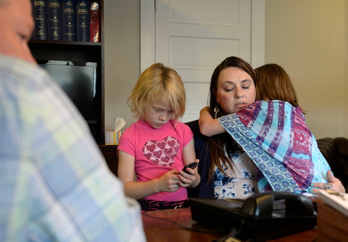 Sarah Allred hugged her 9- and 6-year-olds after the hearing ended.