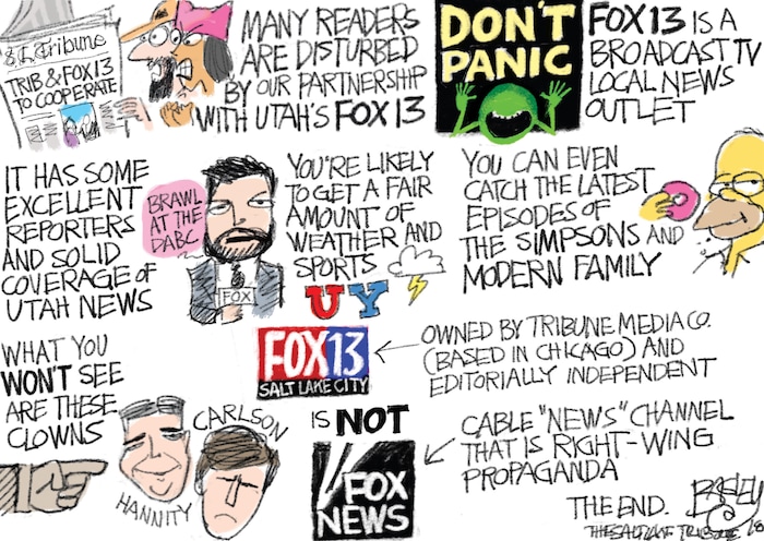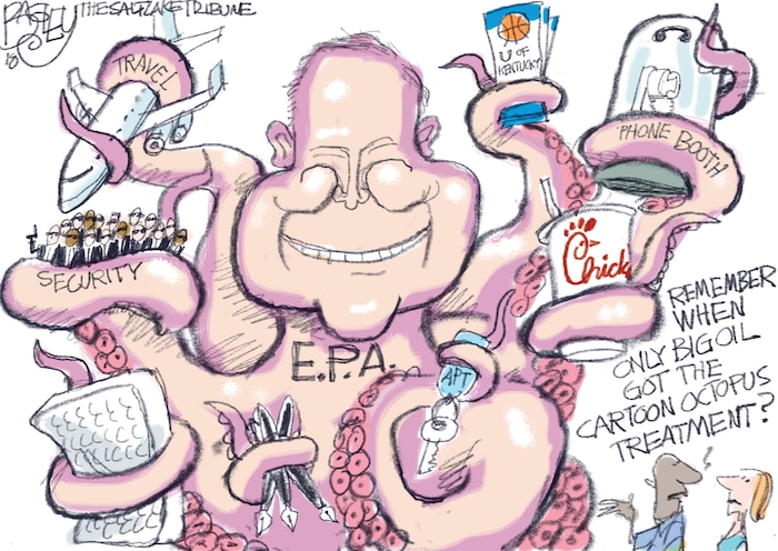 This Pat Bagley cartoon appears in The Salt Lake Tribune on Sunday, June 17, 2018.<br>You can check out the past 10 Bagley editorial cartoons below:<br>Our Foxy Friends<br> Check Back Later<br> Seat of Power<br> Undoing Obama’s Legacy<br>EPA’s Scott Pruitt and Free Stuff<br> The Utah Swamp<br>Hard to See<br>This Is America<br>Pardon Power<br>God Flies First Class<br> Want more Bagley? Become a fan on Facebook.