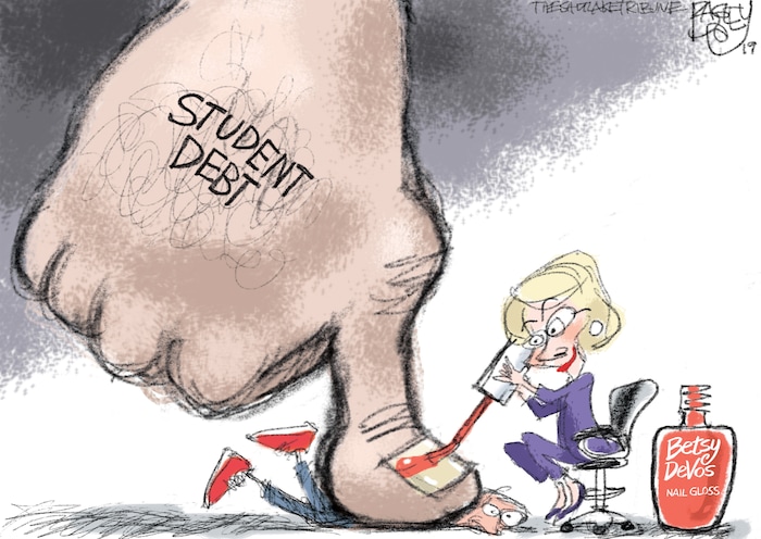 (Pat Bagley | The Salt Lake Tribune) This Pat Bagley cartoon, titled "Crushing Student Loan Debt," appears in The Salt Lake Tribune on Tuesday, April 23, 2019.