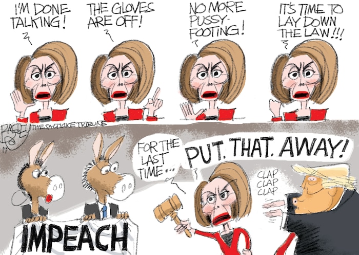 (Pat Bagley | The Salt Lake Tribune) This Pat Bagley cartoon, titled "Pelosi Takes a Stand," appears in The Salt Lake Tribune on Friday, July 12, 2019.