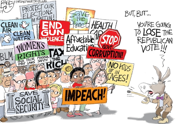(Pat Bagley | The Salt Lake Tribune) This Pat Bagley cartoon, titled "Democrats Wooing Who?," appears in The Salt Lake Tribune on Sunday, July 7, 2019.
