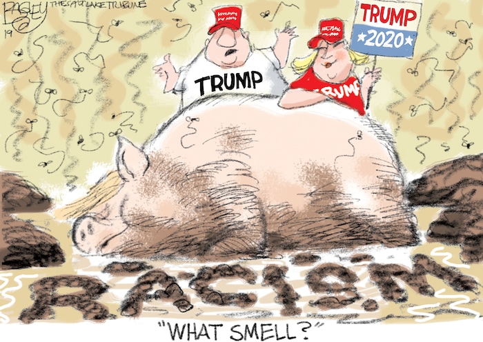 (Pat Bagley | The Salt Lake Tribune) This cartoon, titled “Trucking in Racism,” appears in The Salt Lake Tribune on Thursday, Aug. 8, 2019.