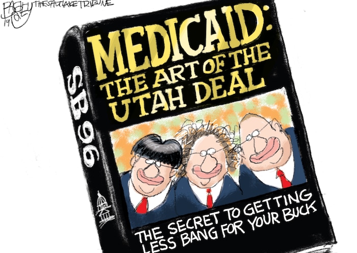 (Pat Bagley | The Salt Lake Tribune) This cartoon, titled “Medicaid Expansion for Dummies,” appears in The Salt Lake Tribune on Friday, August 23, 2019.
