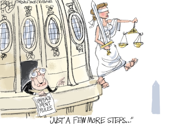 (Pat Bagley | The Salt Lake Tribune) This cartoon, titled "Republican Rules of Impeachment," appears in The Salt Lake Tribune on Tuesday, Dec. 17, 2019.
