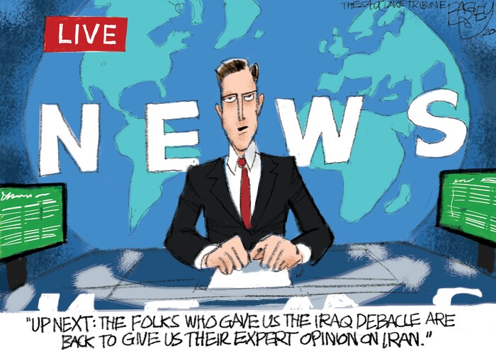 This Pat Bagley cartoon appears in The Salt Lake Tribune on Wednesday, Jan. 8, 2020. You can check out the past 10 Bagley editorial cartoons below:
