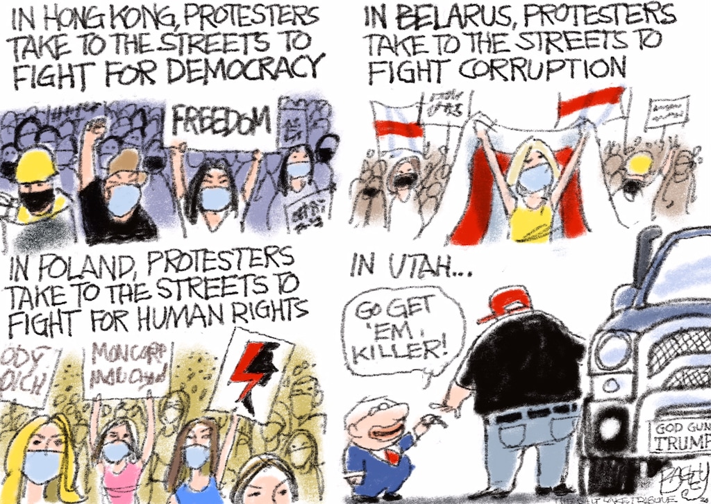 This Pat Bagley cartoon appears in The Salt Lake Tribune on Thursday, Nov. 19, 2020. You can check out the past 10 Bagley editorial cartoons below:
