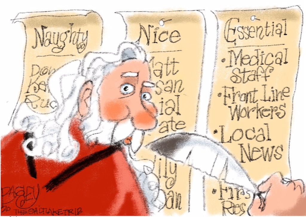 (Pat Bagley | The Salt Lake Tribune) This cartoon, titled "Making a List," appears in The Salt Lake Tribune on Thursday, Dec. 24, 2020.