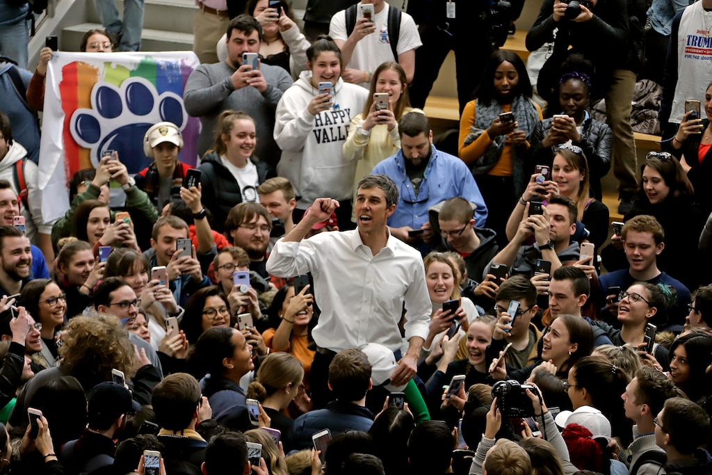 State College, Pa. • Whatever anyone says about Beto O’Rourke in the coming months, no one will ever accuse him of lacking enthusiasm.