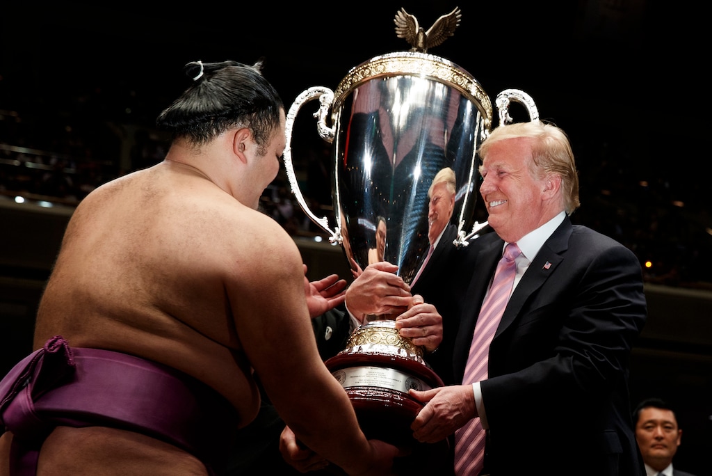 From his seat, beside the Japanese prime minister, it must have looked as though sumo, with its throwing, tripping and slapping, is a no-holds-barred endeavor, much like the Trump presidency.