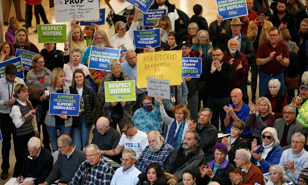 (Rick Bowmer | AP file photo) Supporters of a voter-approved measure to fully expand Medicaid gather at a rally to ask lawmakers not to change the law during the first day of the Utah Legislature, at the Utah State Capitol Monday, Jan. 28, 2019, in Salt Lake City.