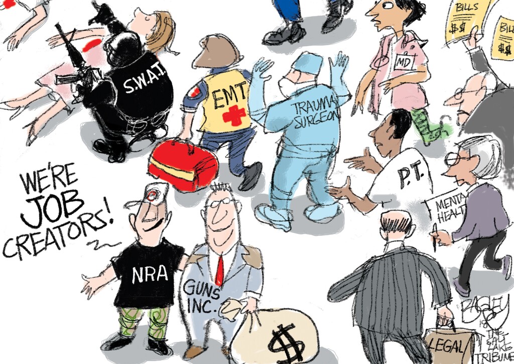 We are a nation swimming in guns. The Salt Lake Tribune is far from swimming in cash.