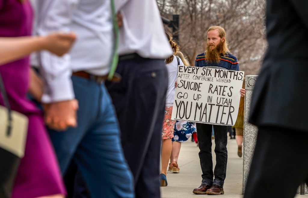 Leah Hogsten | The Salt Lake Tribune "It's a public relations move," said Chase Cluff of The Church of Jesus Christ of Latter-day Saints change in policy regarding LGBTQ members outside the 189th Annual General Conference of The Church of Jesus Christ of Latter-day Saints, April 6, 2019 in Salt Lake City.