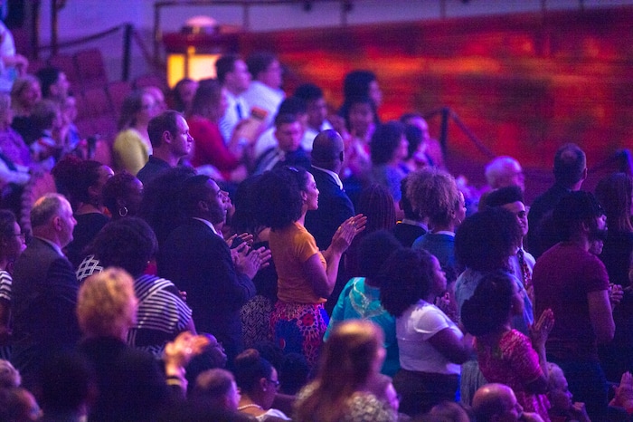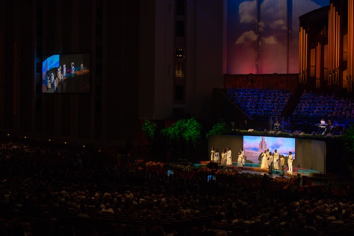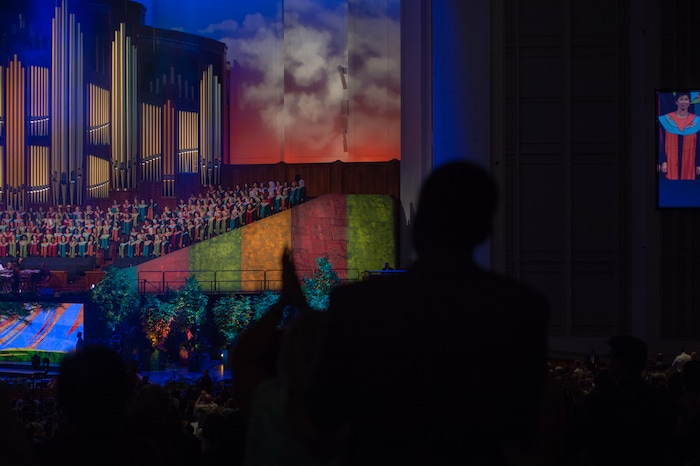 (Rachel Molenda | The Salt Lake Tribune) People stand as the Be One Chorus performs at the LDS Conference Center in Salt Lake City, Utah, on Friday, June 1, 2018.The First Presidency of the LDS Church sponsored "Be One," an event to celebrate the 40th anniversary of the 1978 change that allowed black men and boys to hold the priesthood and black women and girls to enter LDS temples.
