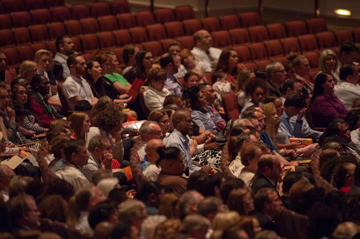 (Rachel Molenda | The Salt Lake Tribune) Attendees of Be One, an event to celebrate the 40th anniversary of the 1978 change that allowed black men and boys to hold the priesthood and black women and girls to enter LDS temples, listen to speakers at the LDS Conference Center in Salt Lake City, Utah, on Friday, June 1, 2018.