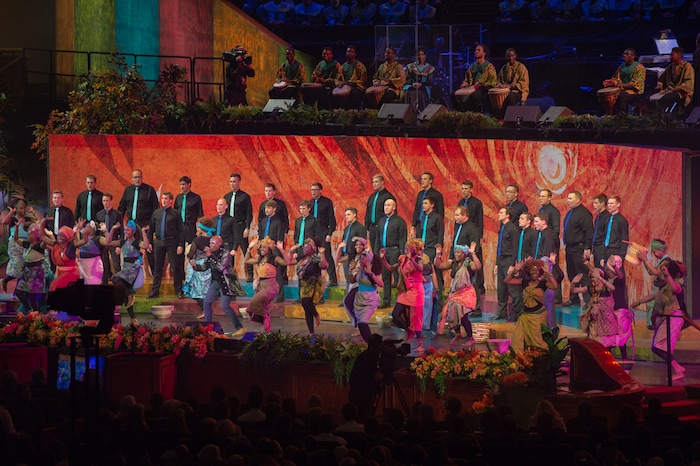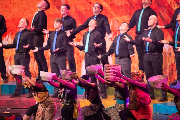 (Rachel Molenda | The Salt Lake Tribune) (Rachel Molenda | The Salt Lake Tribune) Dancers perform with BYU Men's Chorus alumni during Alex Boyé's set at the LDS Conference Center in Salt Lake City, Utah, on Friday, June 1, 2018. The First Presidency of the LDS Church sponsored "Be One," an event to celebrate the 40th anniversary of the 1978 change that allowed black men and boys to hold the priesthood and black women and girls to enter LDS temples.