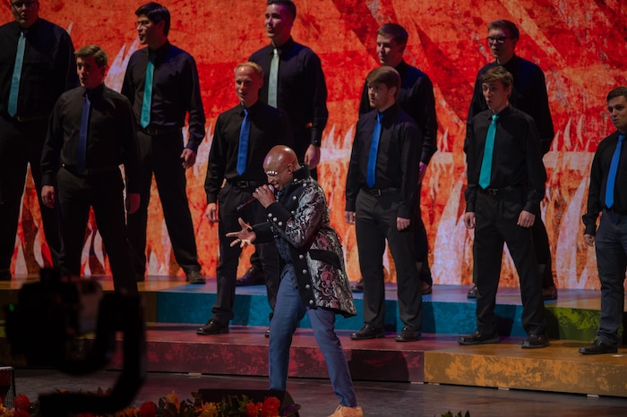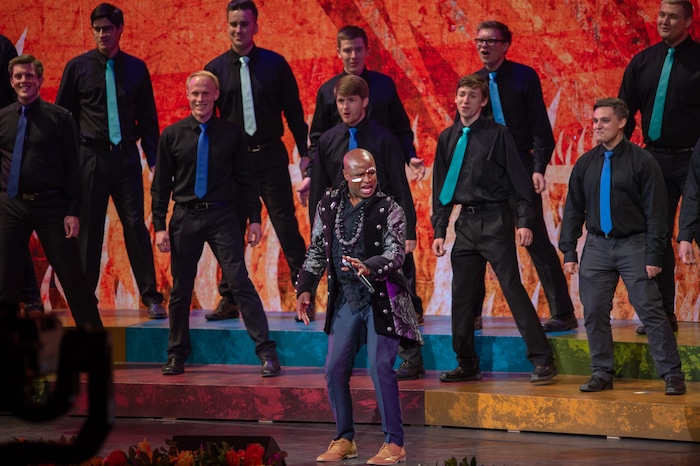 (Rachel Molenda | The Salt Lake Tribune) Alex Boyé performs with BYU Men's Chorus alumni at the LDS Conference Center in Salt Lake City, Utah, on Friday, June 1, 2018. The First Presidency of the LDS Church sponsored "Be One," an event to celebrate the 40th anniversary of the 1978 change that allowed black men and boys to hold the priesthood and black women and girls to enter LDS temples.