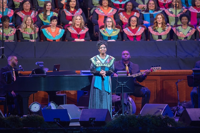 (Rachel Molenda | The Salt Lake Tribune) Gladys Knight directs the Be One Choir at the LDS Conference Center in Salt Lake City, Utah, on Friday, June 1, 2018. The First Presidency of the LDS Church sponsored "Be One," an event to celebrate the 40th anniversary of the 1978 change that allowed black men and boys to hold the priesthood and black women and girls to enter LDS temples.