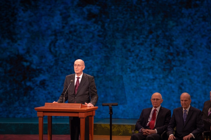 (Rachel Molenda | The Salt Lake Tribune) President Henry B. Eyring address the crowd at Be One, an event to celebrate the 40th anniversary of the 1978 change that allowed black men and boys to hold the priesthood and black women and girls to enter LDS temples. The event was held at the LDS Conference Center in Salt Lake City, Utah, on Friday, June 1, 2018.
