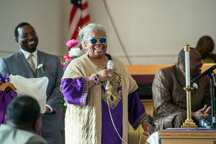 Chris Detrick | The Salt Lake Tribune The Rev. Nurjhan Govan speaks during a pastor appreciation service at Trinity African Methodist Episcopal Church, Sunday, April 17, 2016.