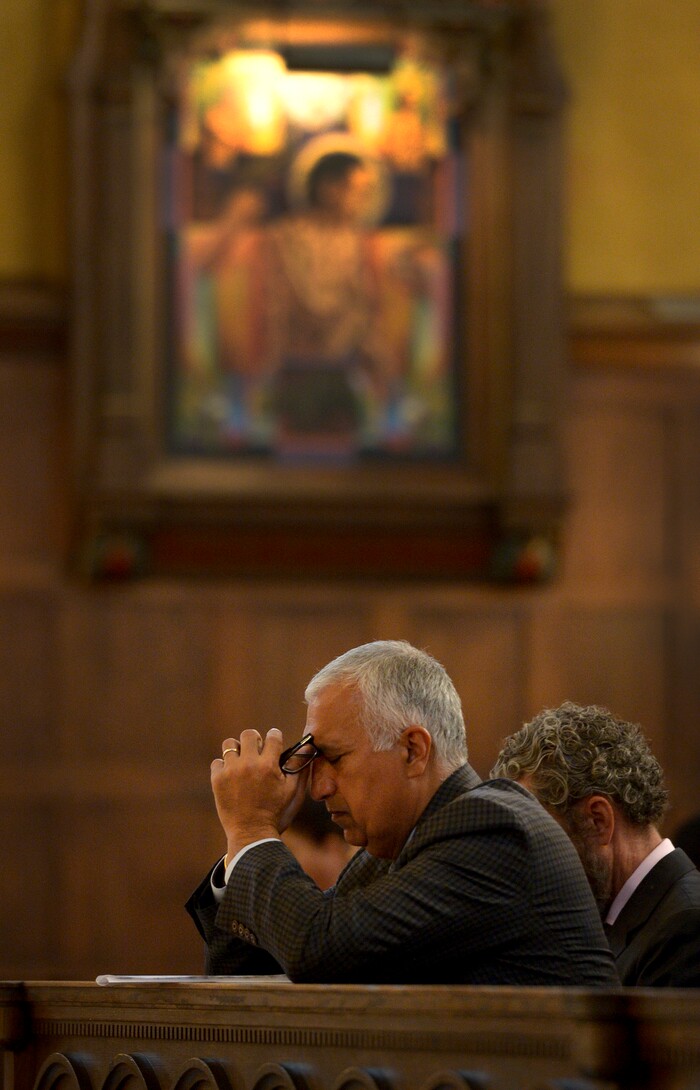 Leah Hogsten | The Salt Lake Tribune Salt Lake County District Attorney Sim Gill prays during The Feast of the Exaltation of the Holy Cross Red Mass, Friday, Sept. 14, 2018 at Cathedral of the Madeleine to recognize and honor first responders, members of the military and the legal professions for their service to the community.