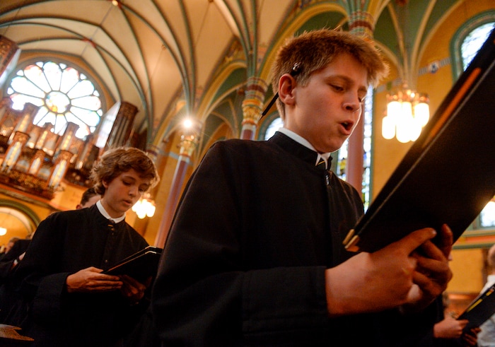 Leah Hogsten | The Salt Lake Tribune Members of the Madeleine Choir School enter the Cathedral of the Madeleine for The Feast of the Exaltation of the Holy Cross Red Mass, Friday, Sept. 14, 2018 that recognizes and honors first responders, members of the military and the legal professions for their service to the community.