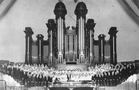 The pioneers raised their voices in song underneath the sacred structure’s turtle-domed roof, with its signature acoustics, designed so all attendees could hear from any seat in the hall, and its mammoth pipe organ.