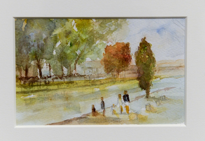 Leah Hogsten | The Salt Lake Tribune "Walking by the Seine, 2017." Henry Eyring's extensive watercolor collection, on display now through January 21, 2019 at the Church History Museum. The collection, titled: ÒA Visual Journal: The Artwork of Henry B. Eyring,Ó reveals Eyring's memories with family, friends and trips. Eyring is second counselor in the First Presidency of The Church of Jesus Christ of Latter-day Saints.