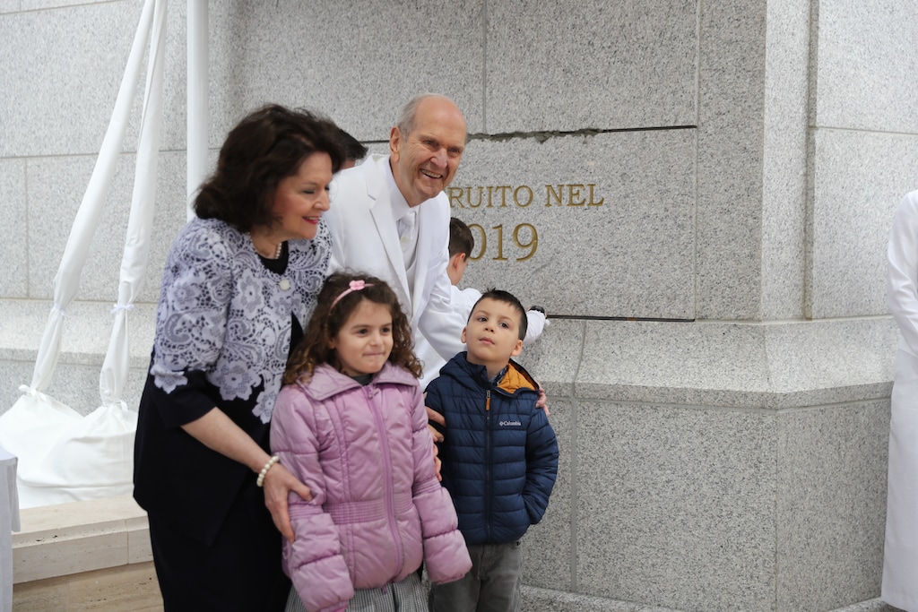 During Sunday’s ceremony, as is customary, Nelson, his wife, Wendy, and other church leaders exited the structure to place mortar around the cornerstone. They did so with all the precision of honorary bricklayers, not expert craftspeople.