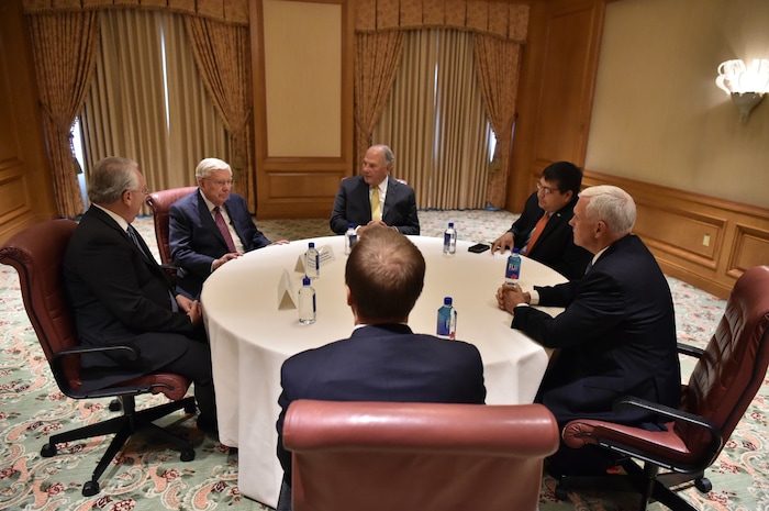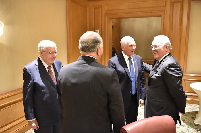 Pence thanked the Latter-day Saint representatives for the faith’s “significant [humanitarian] footprint around the world,” the Seventy said, “where we continue to assist Father in Heaven’s children any way we can.”