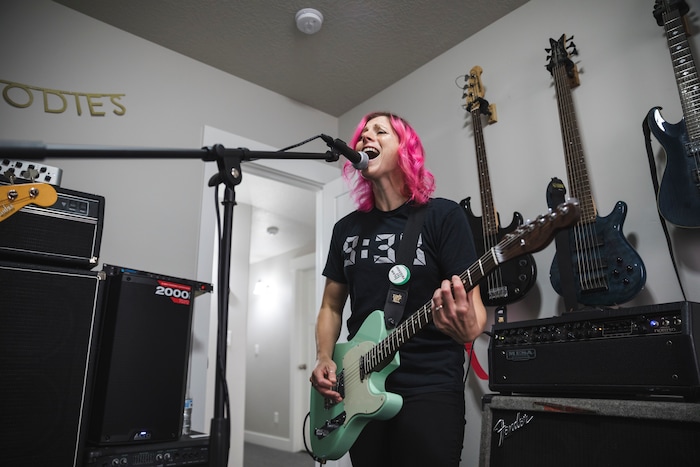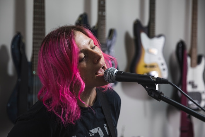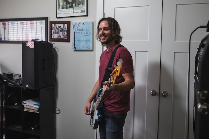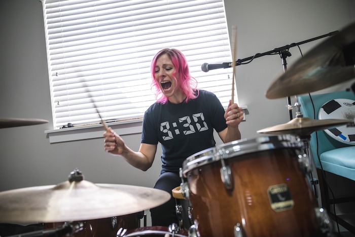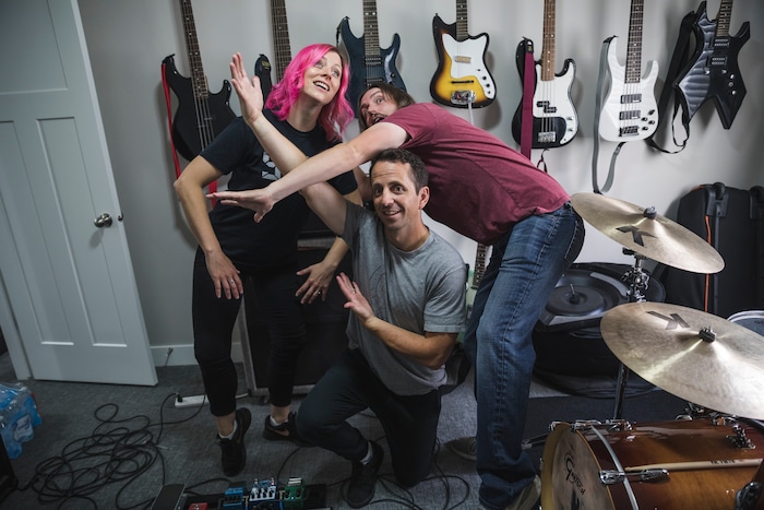 At first, Bradley and Taylor both played guitar, “but we were both, like, ‘nah,’” Bradley said. She had a drum set, so she started playing drums, “and it was super rad. So we got stoked on it, and I was, like, ‘We need a bassist. We’ve got to make this a band. This is so cool.’ And he was, like, ‘I know a guy from high school, but I can’t vouch for him.’”